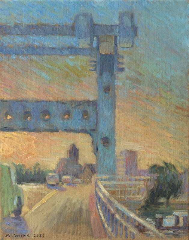 Auf der Brücke von Wolgast bei Abenddämmerung